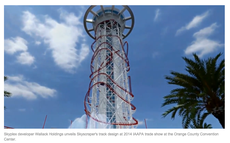 米フロリダ州オーランドのテーマパーク「スカイプレックス」のローラーコースタースカイスクレイパーのCG映像が公開された。