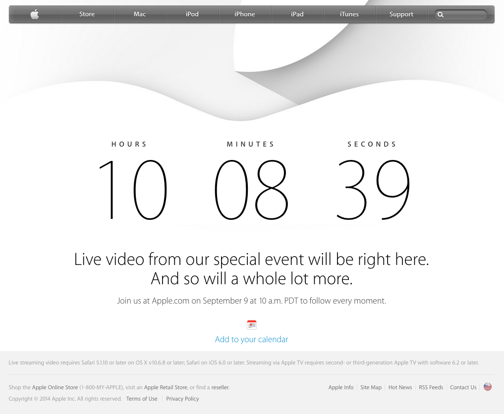 いつもアップルの発表のストリーミングサイトを探して、徘徊しているが、今回は、Apple公式サイトで、発表がおこなわれるようなカウントダウンがはじまっている。