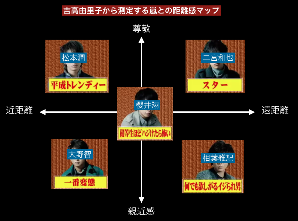 紅白の司会を一緒にこなす嵐のメンバーは吉高ワールドではこのように見えるらしい。