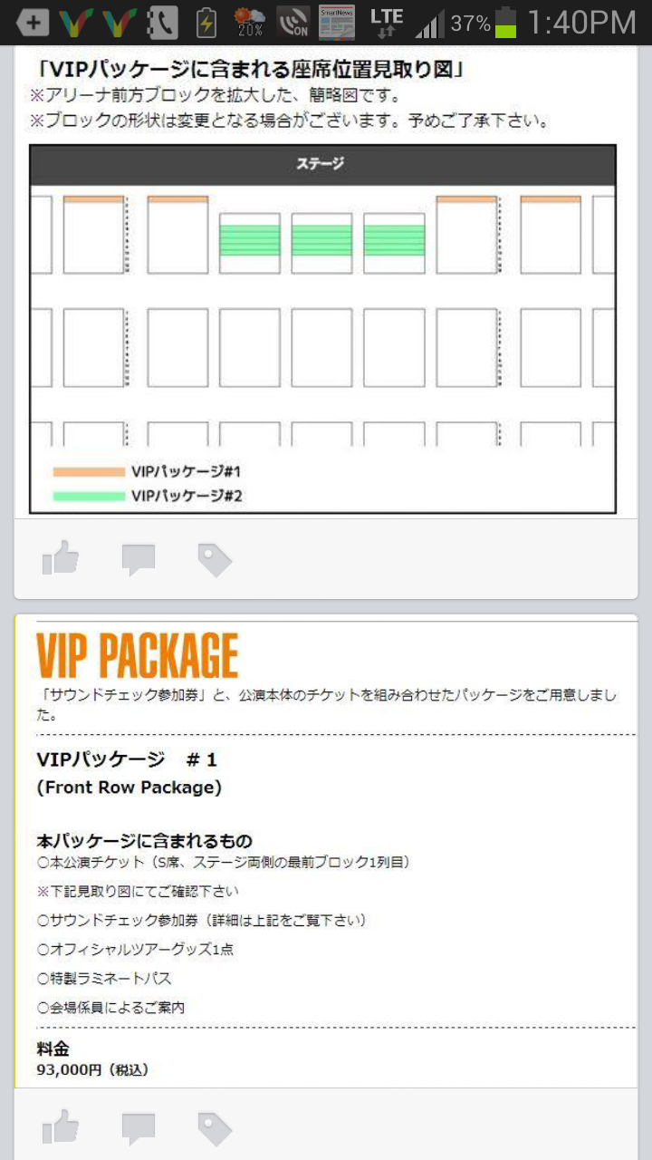 武道館のアリーナが10万円ならば、 このVIP packageの 83,000~93,000円の方が、価値があると思う。
