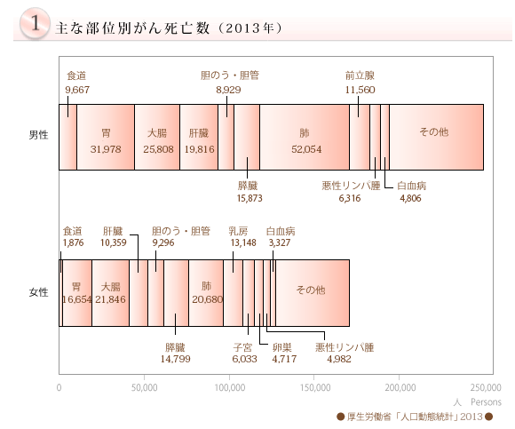 肺がんは男では1993年に胃がんを抜いて、死因のトップになりました。