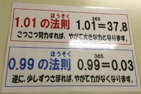 毎日たった1%(1/100)の努力で、一年後は37.8倍もの成長!