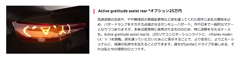 このクルマからの感情表現ありだなぁ…。道を譲ってくれた時なんかのサインはぜひ採用して欲しい!