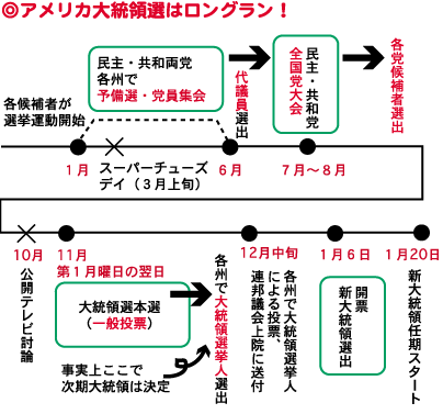2016年11月08日:一般有権者による投票及び開票(火曜日=日曜日はキリスト教で祝日、月曜日では馬車では広い国土で間にあわないために火曜日が投票日となった)