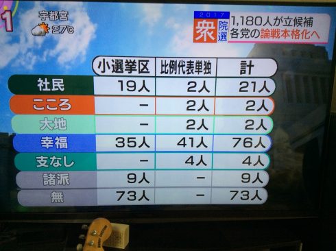 平成29年2017年10月23日投開票 衆議院総選挙 結果