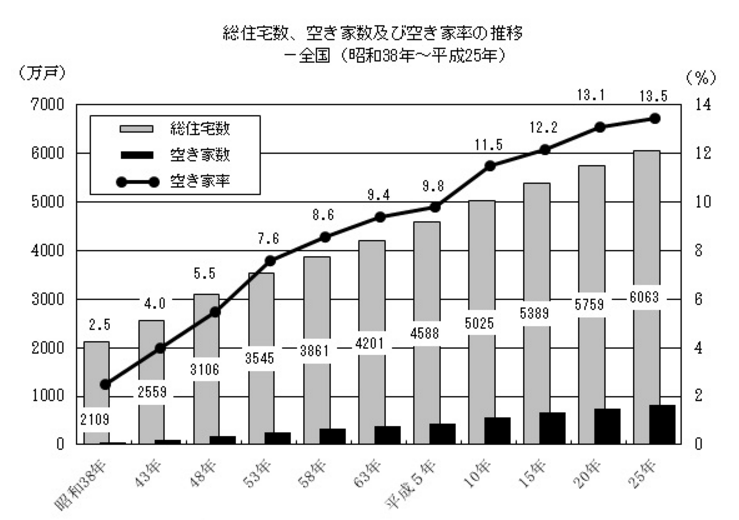 総住宅数は,6063万戸と5.3%の上昇 空き家数は820万戸