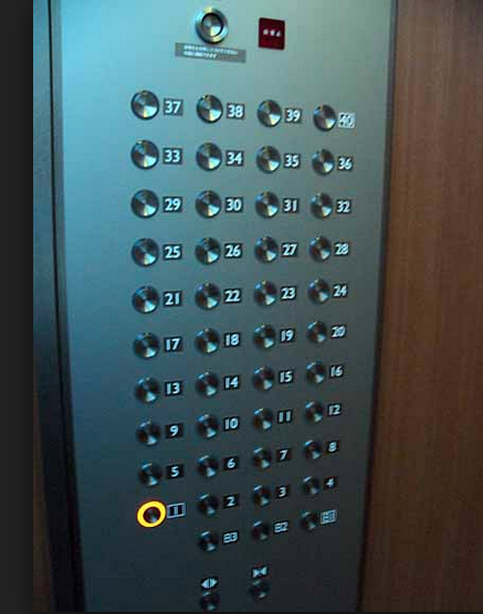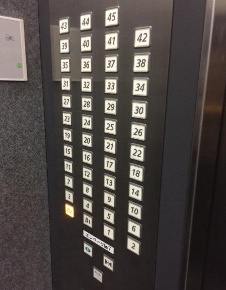 はじめてきた人は、このエレベータのボタンを探す度に、どれだけストレスを感じるのだろうか?
