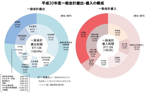 ❏国家予算(平成30 2018年) 97兆7128億円 歳入=歳出 ※同額