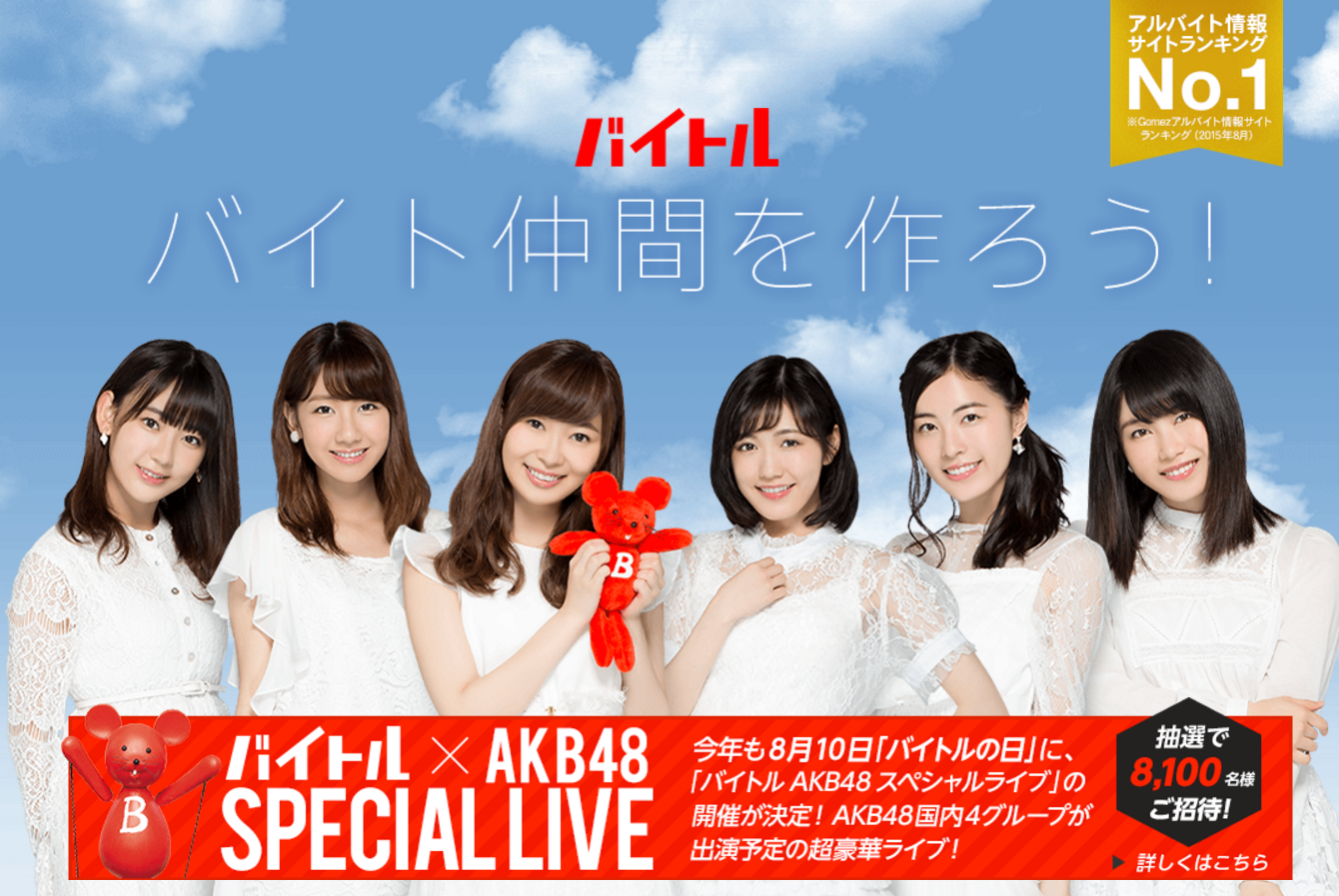 これはテレビの番組企画としては、CMだけでも相当だ。もちろん、AKBの出演するCMも「バイトル.com」などはヘビーローテーションだ。