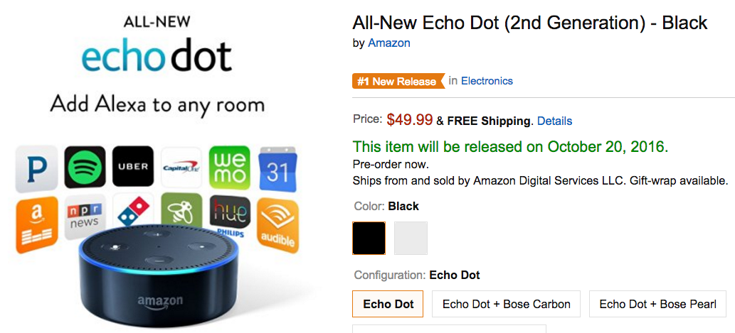 49.99ドル の安価になったヒットしている Amazon Echoの廉価版だ。