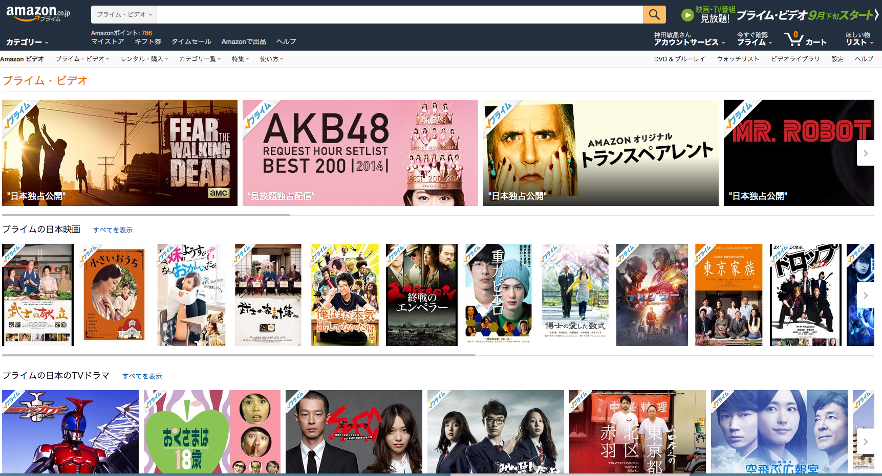 Amazonプライムは、年会費3,900円(税込)で、即日発送とかのサービスがあるが、これにprime videoが9月下旬から加わると予告されていたが、スタートしましたね!