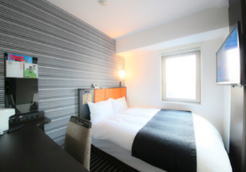 アパホテルは、シングルルームでもベッドは横幅140cmあって寝心地よく、テレビは40型以上と大きく見やすい。枕元に、照明等のスイッチや携帯電話の充電コンセントなど必要な機能をコンパクトにまとめて、ベッドに寝ながら必要な操作ができるようになっています。浴槽は卵形でゆったり入れるのに、湯量は通常の80%で済みます。浴槽に湯を入れるのも、一定量溜まると給湯が止まる定量止水栓で、湯をあふれさせるムダや心配がありません。様々な工夫を施して、炭酸ガス排出量3分の1を実現しました。