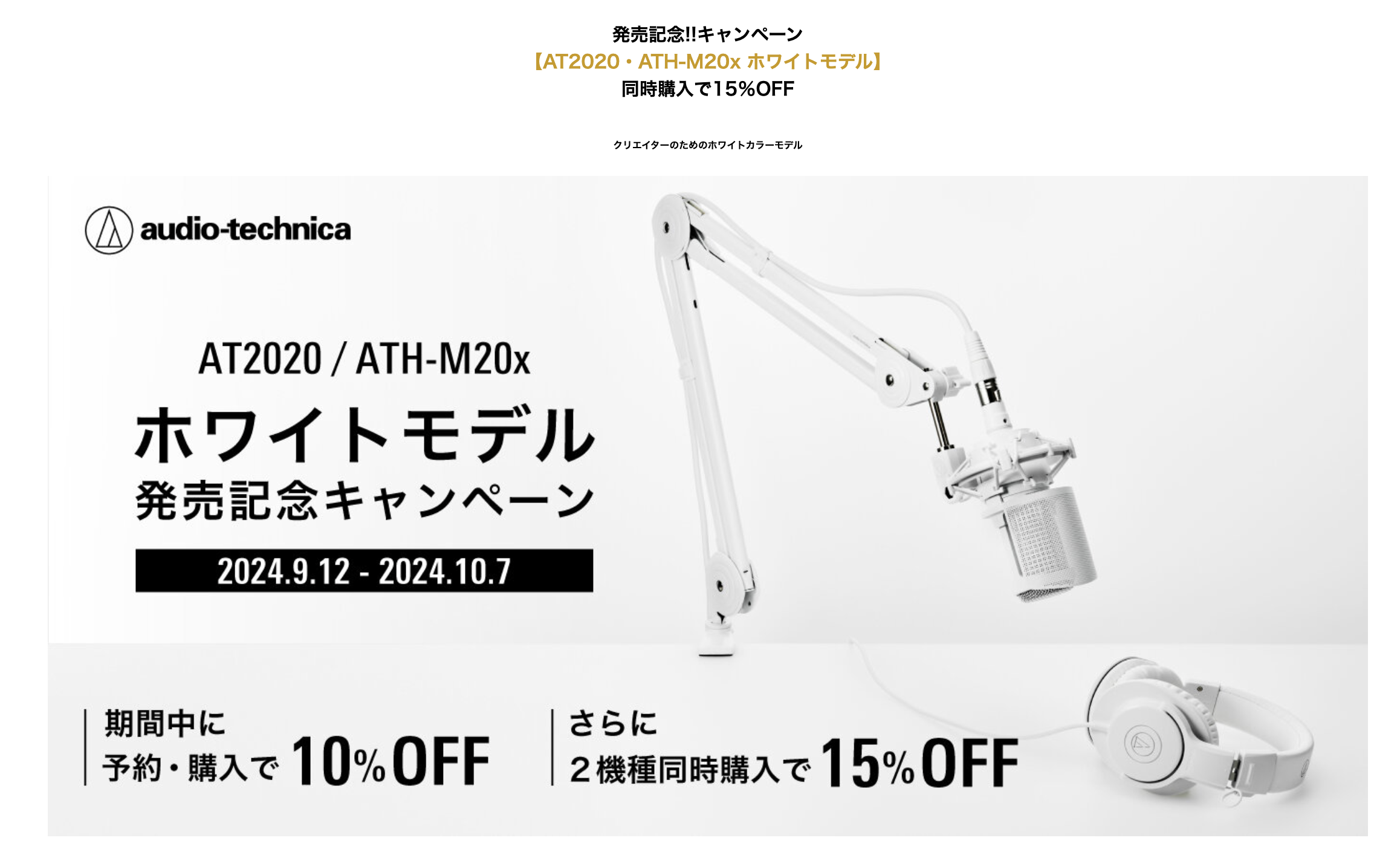 ※同時購入は「AT2020 CWH」と「ATH-M20x WH」セットでのご注文です。