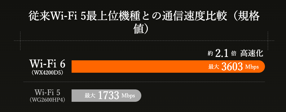 WiFi6 のモデルの理論上、最大 3,603Mbps の3ギガなので、10ギガの回線でもWi-Fiでは、これがMAXだ。