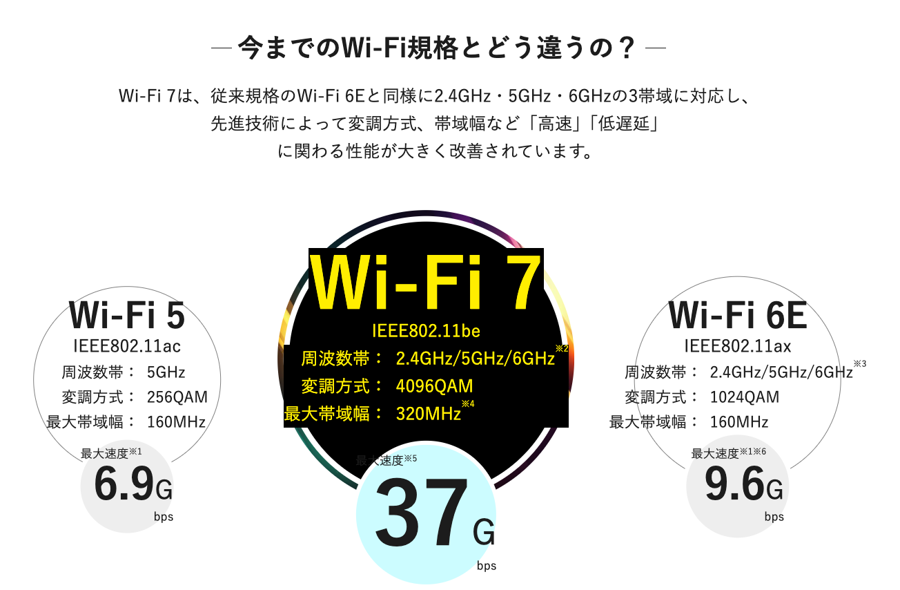 ただしWi-Fi 7固有のMLO(マルチリンク)等でレイテンシや混雑耐性は改善します。フル性能を体感するにはWi-Fi 7対応APが必要です。