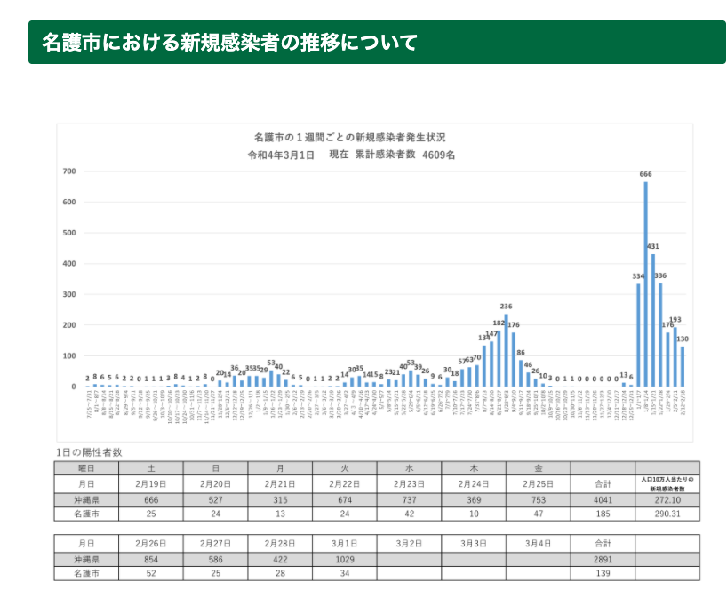 なんとっても、話題のビッグボスの名護市の滞在期間中でも感染対策バッチリで感染者は、2月以降増加せず!