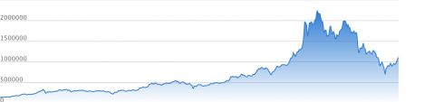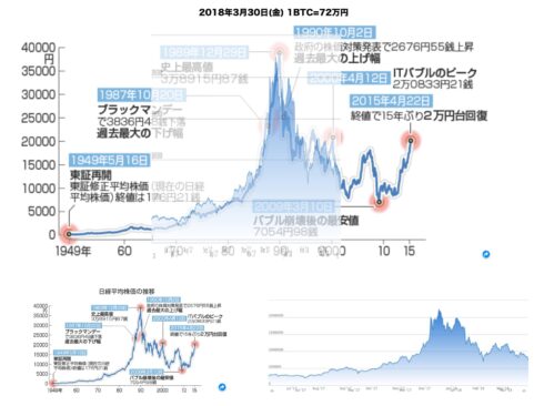 あくまでも、右肩上がりがバブルを迎えて、落ちながら、上下動を繰り返しながら、2万円台に回復するストーリーがビットコインと連動するかどうかは誰にもわからない。
