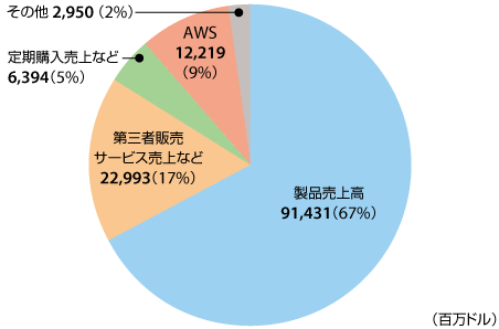 米Amazonの2016年における連結総売上高は前期比20.7%増の1359億8700万ドル