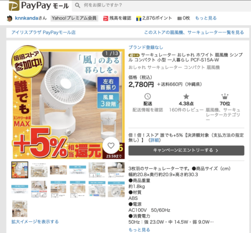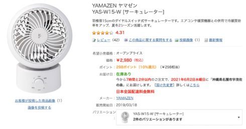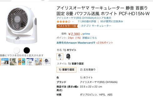 アイリスオーヤマのサーキュレーターがまだ安い…2,380円だ。