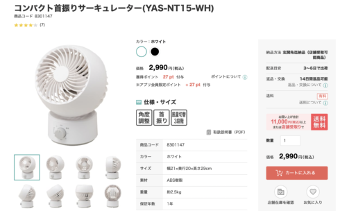 お値段以上のニトリでも、サーキュレーターは安いが、1万1,000円以上の注文もしくは店頭受け取りだ。