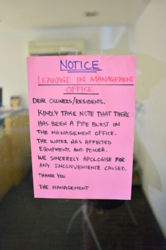 コンドミニアムのマネージメントオフィスですら、水漏れで休業中!