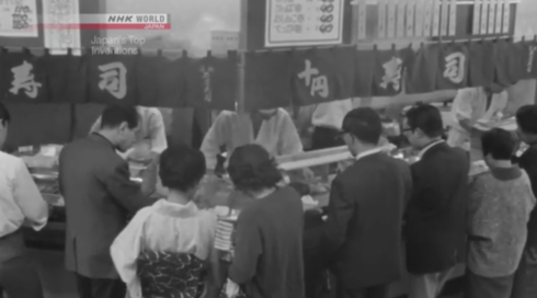 ビール工場のベルトコンベアを見て、ベルトコンベアで回る寿司を考案し試作に入るが、コーナーがどうしても曲がりきれなかった。