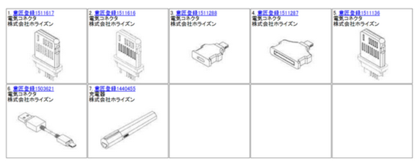(株)ホライズンの名義で、日本国内において本製品関連と思われる意匠登録が行なわれていました。
