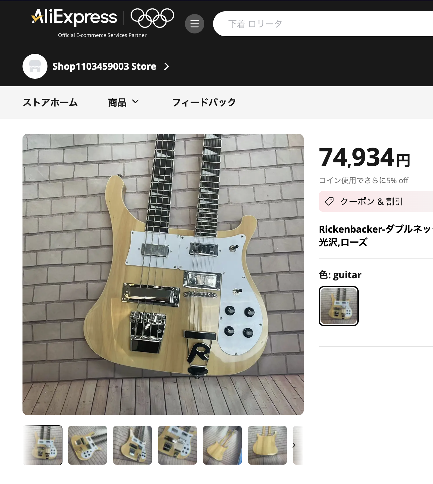 最近は、Temu でもよく見かけるけれども、ロゴは写っていないからわからないけれども、このように、『Rickenbacker』のニセロゴが配置されているのかもね。