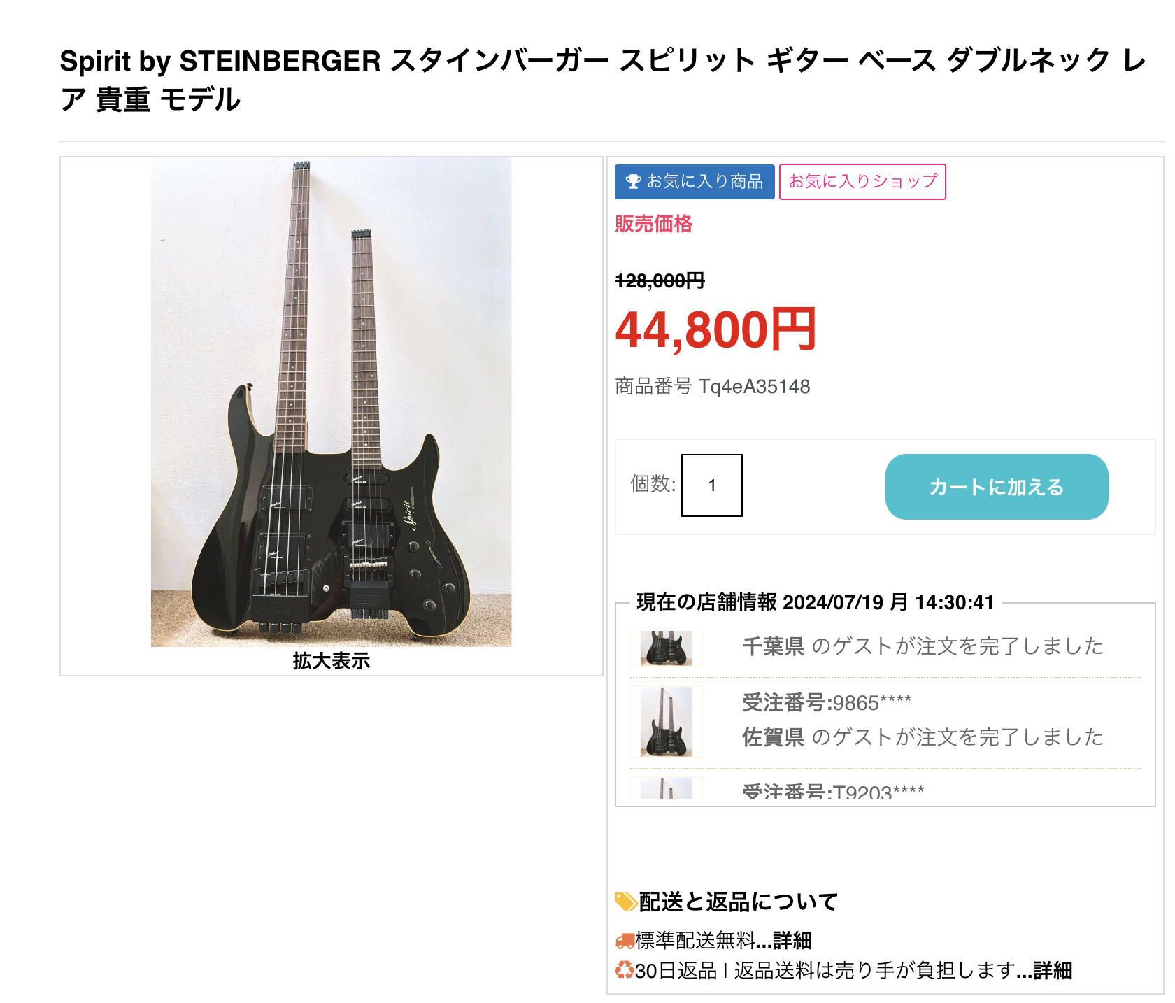 一応、本家のSteinberger Spirit らしきダブルネックもあった!