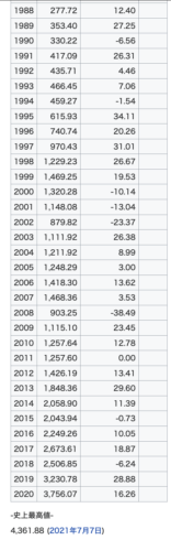 2001年(911)、2002年、2008年(リーマン)のみ下がっている…。2021年、4,000代へ突入