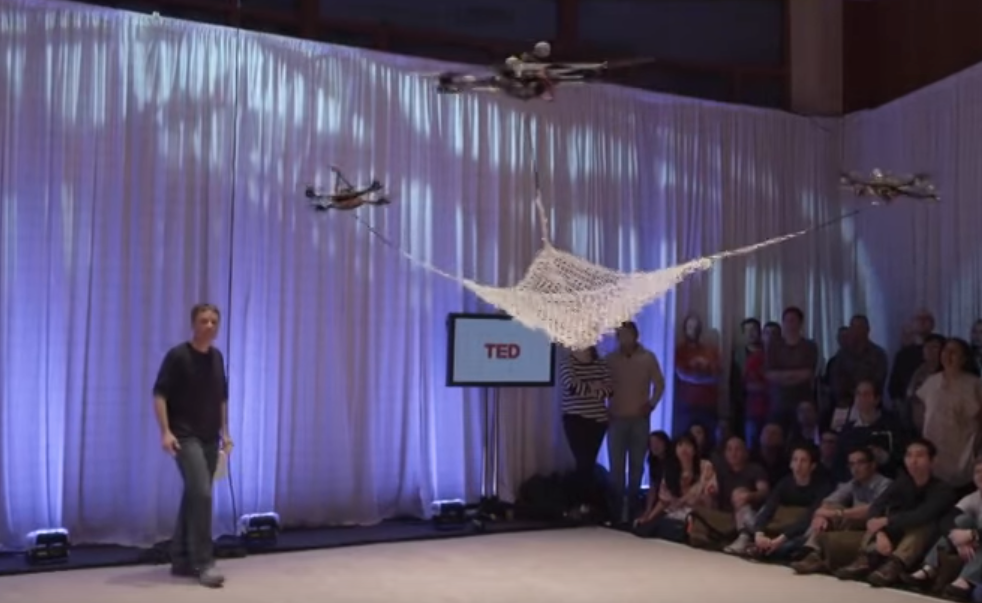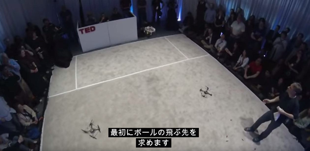 網を使って3台のドローンが玉を跳ね返す。このリアルタイムの演算処理はすごい!