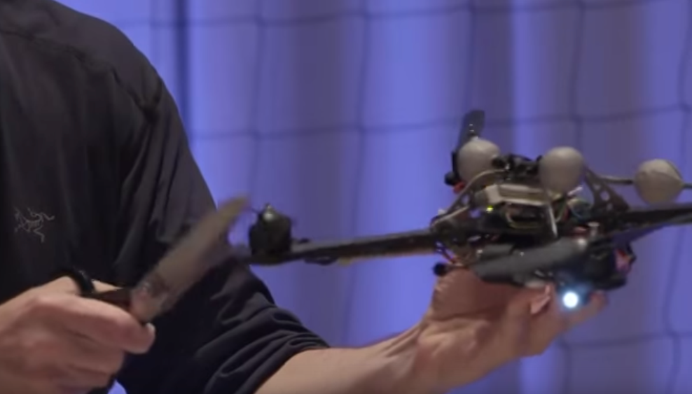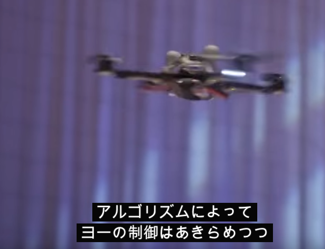 プロペラを切られても、横軸の回転制御できないまでも飛び続けるドローン。まるでガメラのようだw