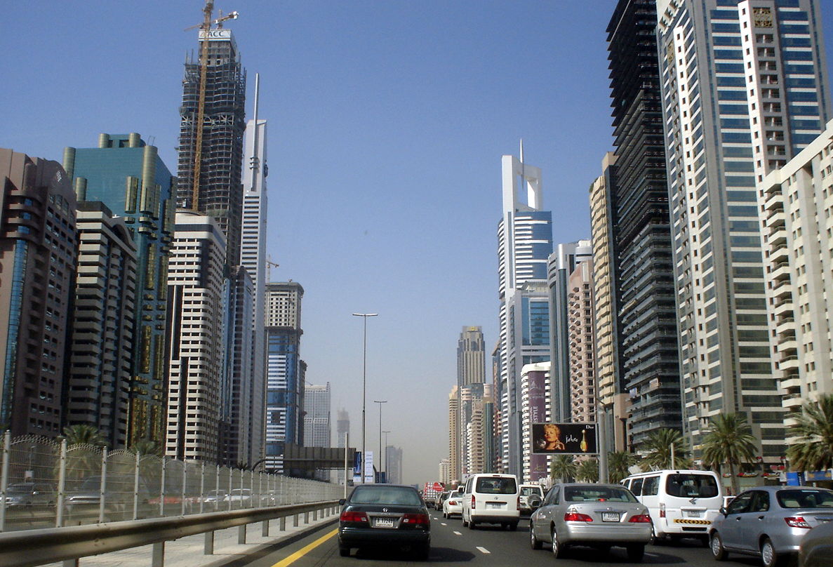 1990年のドバイの二車線のシェイクラシード道路から、現在の16車線道路。