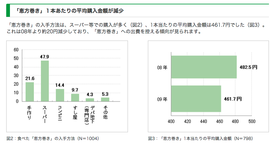 ちなみに、バレンタインデーの市場規模は1500億円規模なので、恵方巻きの市場規模はバレンタインデーの1割にまで成長している。