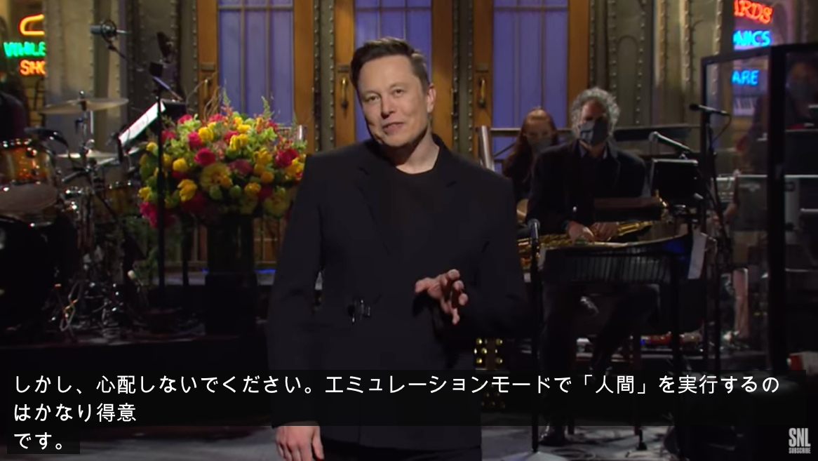 マスク氏は観客の前に登場すると、「私のしゃべり方には抑揚や変化があまりない(中略)それでコメディー向きだと言われている」とジョークを飛ばした。