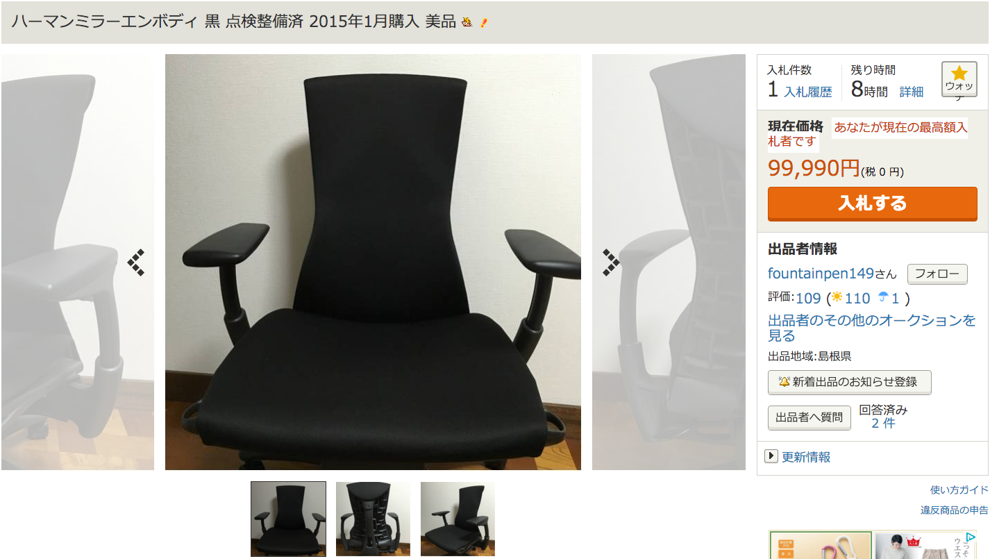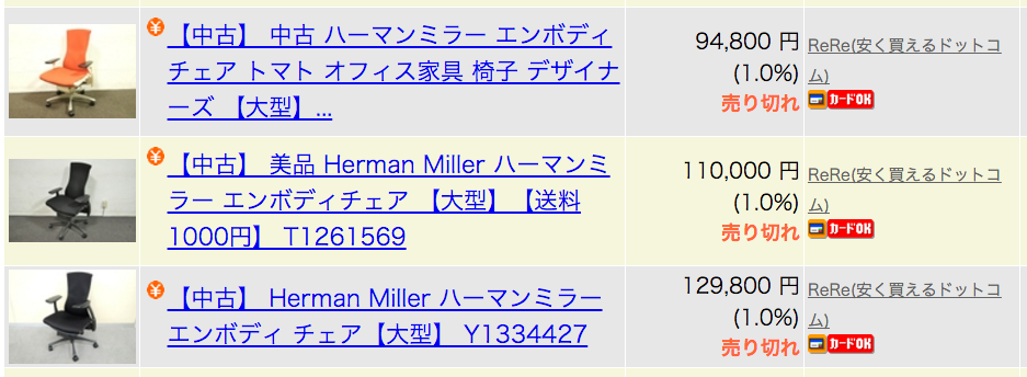 何よりも、ハーマンミラーのエンボディやアーロンチェアは、リセールバリューが高い製品だ。