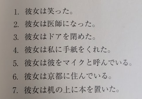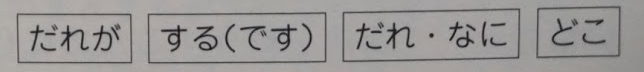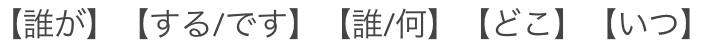 【誰が】【する/です】【誰/何】【どこ】【いつ】
