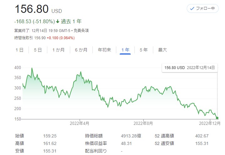時価総額は5000億ドル割れ、2020年11月以来