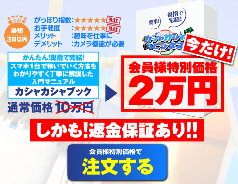 ❏今年1月以降、約4800人と契約し約8億円を売り上げていた。❏アイデアは「カシャカシャビジネス」と称して、写真共有アプリ「インスタグラム」に投稿した写真が売れると説明。ホームページ上で「月収200万円以上」などと成功体験談を示し、そのためには2万円のマニュアル購入やフォロワーを増やすアプリの使用(7万~150万円)が必要と勧誘していた。