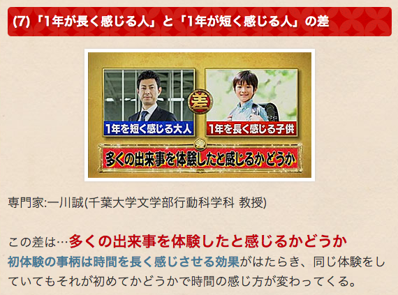 どちらが良い悪いの判断ではなく、脳にとって、「充実時程錯覚」の有無の違いで、1年を短くも長くも感じることができることを知っておいて損はなさそうだ。