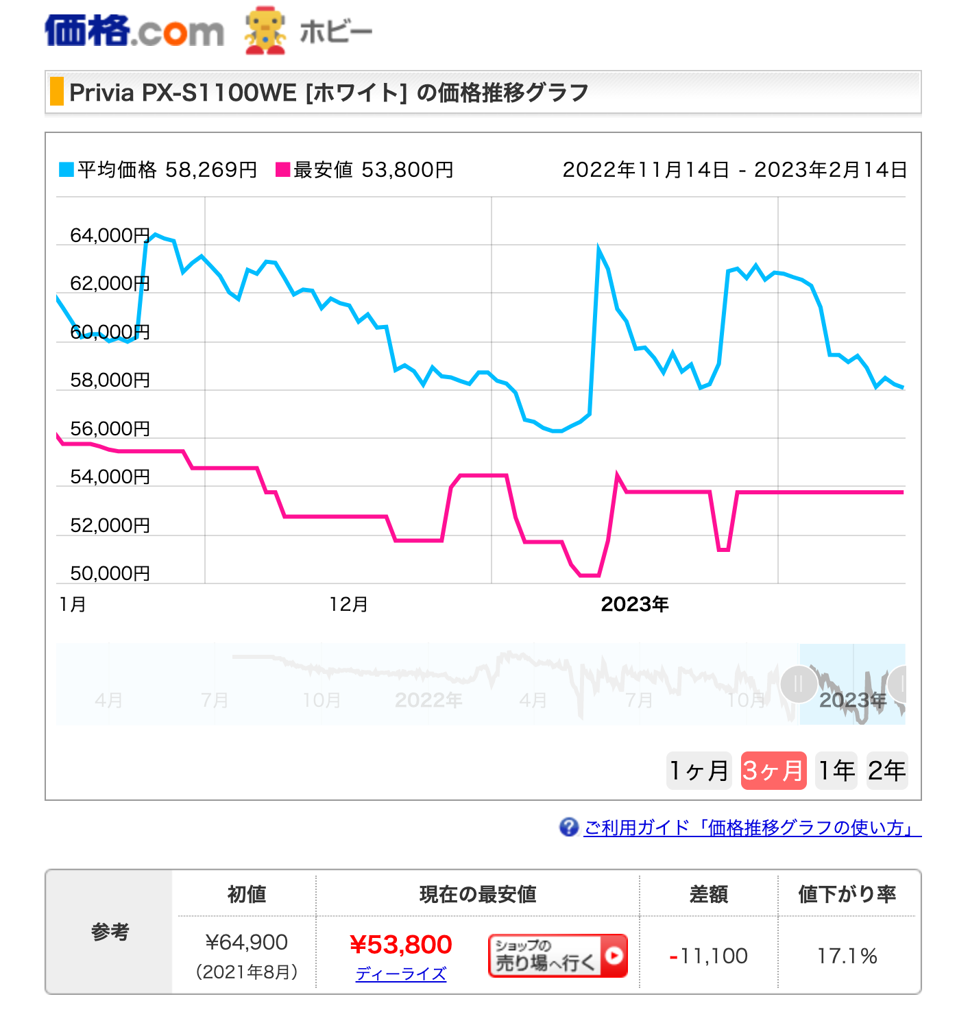 圧倒的に、Privia PX-S3000のほうが機能がすごい。リズム機能だったり音色が700色など。S1000は18色。この差は大きい…。