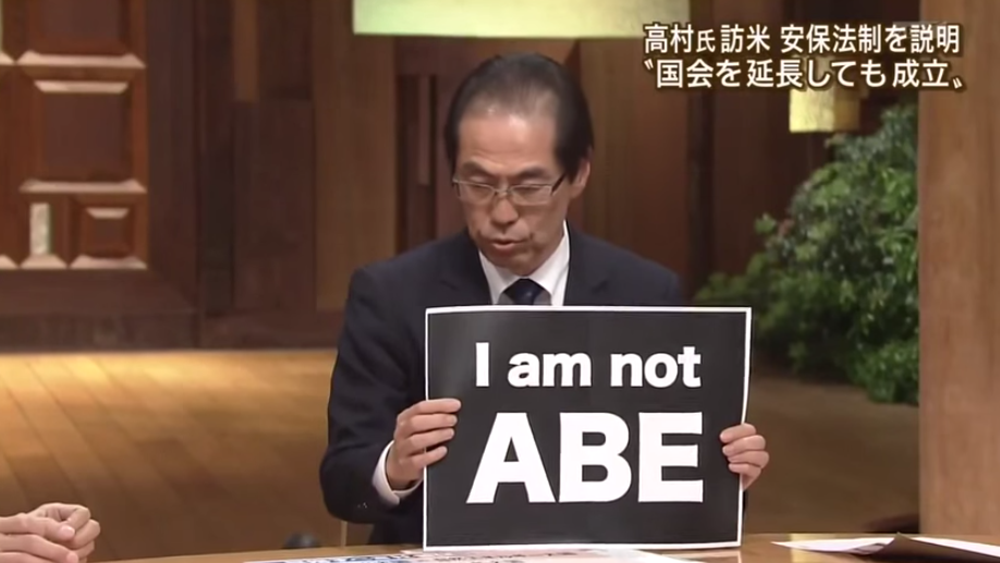 それと生番組での想定外の発言と自作フリップの I am not ABE のパネル