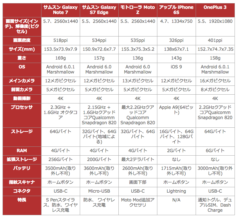 情報源: 「Galaxy Note 7」のスペックを「S7 Edge」「iPhone 6s」「OnePlus 3」と比較 – CNET Japan