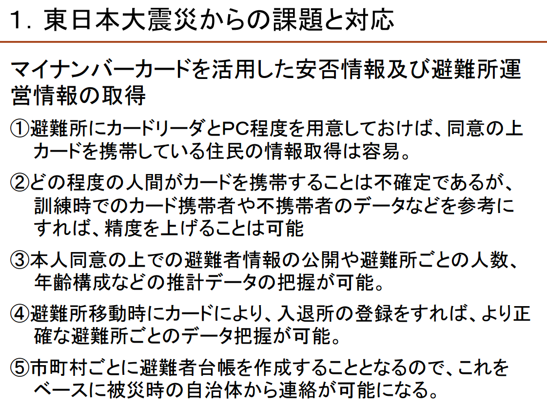 こんなマイナンバーを震災時に持ち歩く訳ないだろう…。