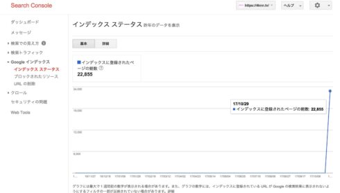 先週の登録で、ようやく、2万2,855ページがGoogleにインデクシングされた。