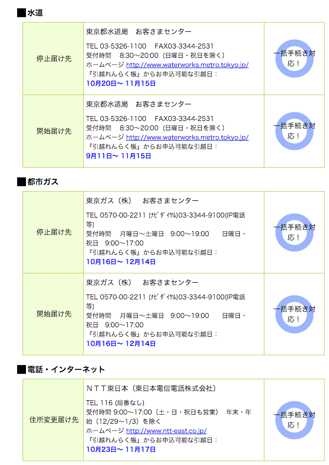 ライフライン引っ越しメモ