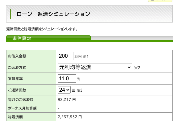 キャッシュで200万円支払っても20年総額で480万円の消費だ。しかし、これを11%で借りると…