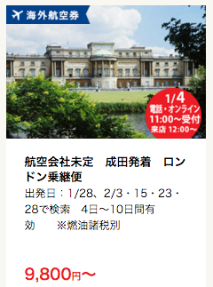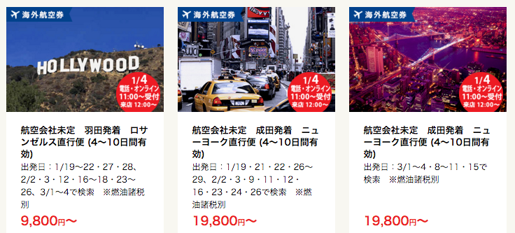 ロサンゼルス、ロンドン、パリがなんと9800円!