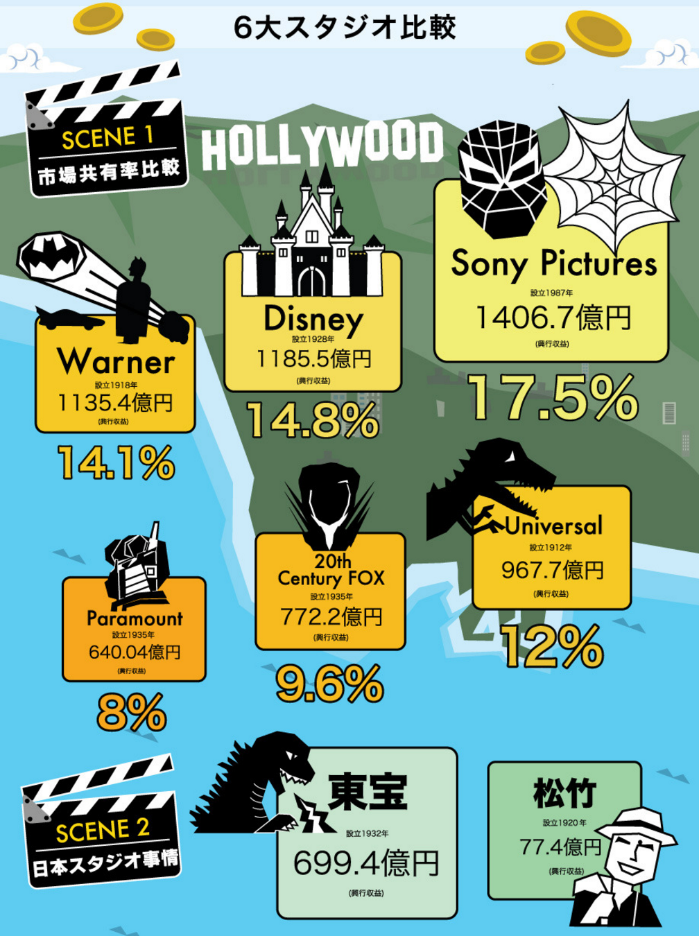 売上ベースで比較すると、ハリウッドメジャーなんて、足もとにもおよばなかった…(笑)映画会社が、こりゃ「映画」で負ける時代がやってくる!