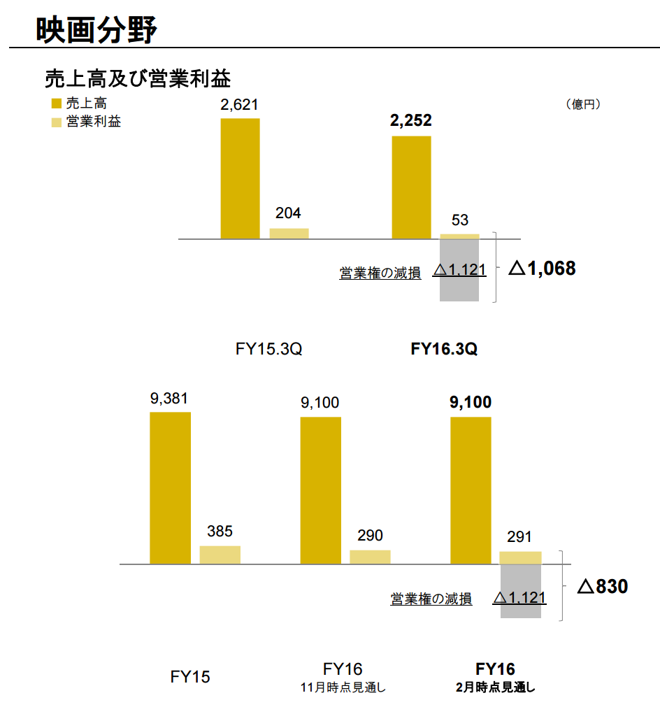 ❏映画部門は、前年同期(2015年)に「スター・ウォーズ」の約10年ぶりの新作「フォースの覚醒」が大ヒットした反動などで、売上高が7%減の